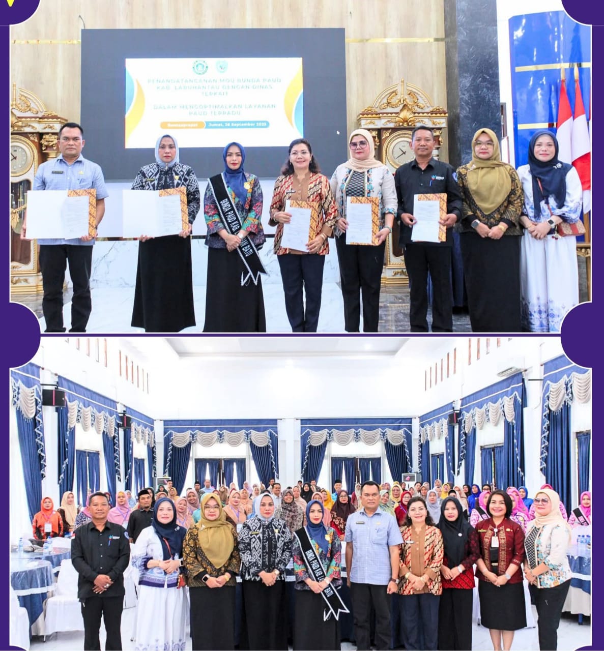 koranwantara. Com. Labuhanbatu-Bunda Paud Kabupaten Labuhanbatu, dr. Hj. Maya Hasmita, Sp.OG, M.K.M, mensosialisasikan Paud Holistik Integratif kepada seluruh bunda Paud Kecamatan se- kabupaten Labuhanbatu di ruang pendopo rumah dinas Bupati Labuhanbatu jalan Wr. Supratman Rantauprapat, Kecamatan Rantau Utara, Jumat (26/9/2025).